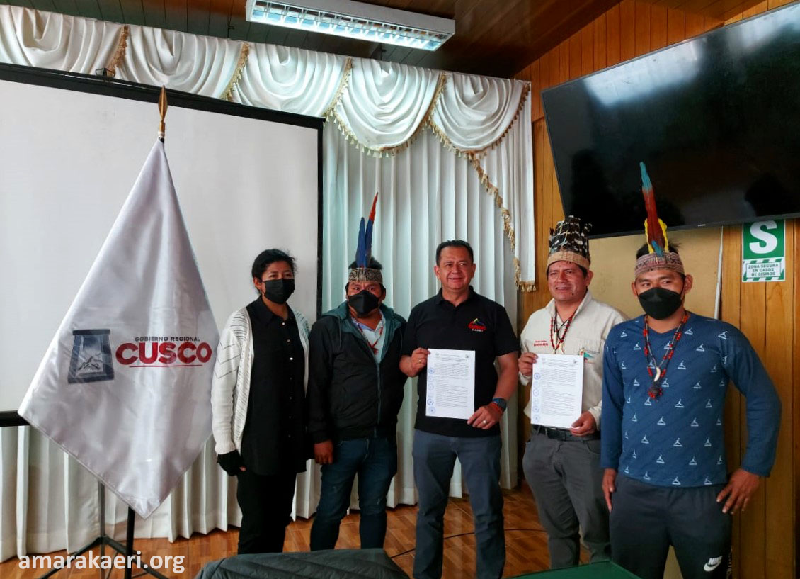 Con el fin de articular acciones para impulsar el proceso de saneamiento físico legal de las comunidades nativas de Queros y Santa Rosa de Huacaria, el Ejecutor del Contrato de Administración de la Reserva Comunal Amarakaeri (ECA Amarakaeri) y la Gerencia Regional de Agricultura y Riego (Geragri) de Cusco firmaron un convenio de cooperación interinstitucional.